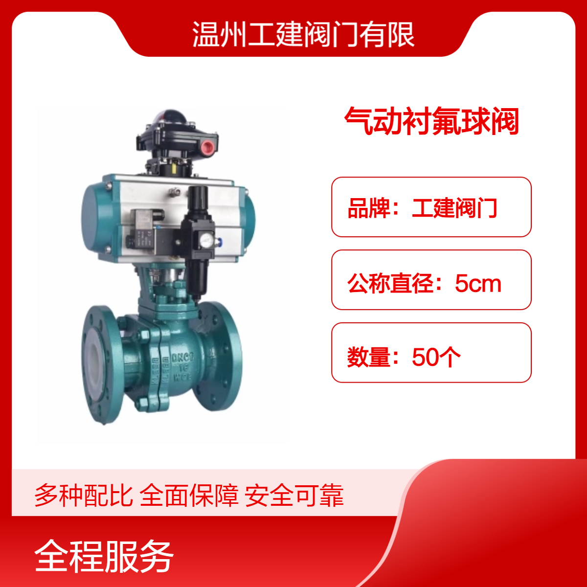 工建阀门 5cm气动碳钢不锈钢衬氟球阀 CF8材质 化工适用-温州工建阀门有限公司发布日期:2024-8-29