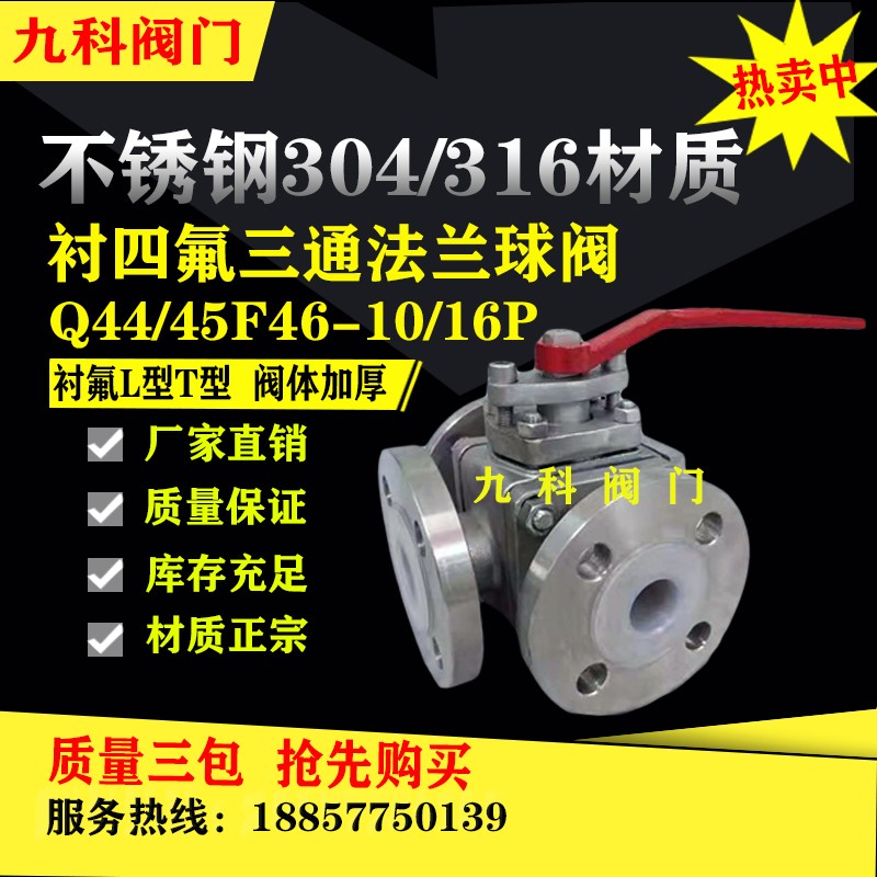 304/316不锈钢衬氟法兰球阀Q44/45F46-16P耐酸碱防腐三通阀门DN50九科阀门-浙江九科阀门有限公司发布日期:2025-7-13
