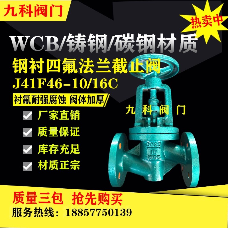 J41F46-16C铸钢碳钢衬四氟法兰截止阀耐酸碱防腐阀门DN50 100 125九科阀门-浙江九科阀门有限公司发布日期:2025-7-13