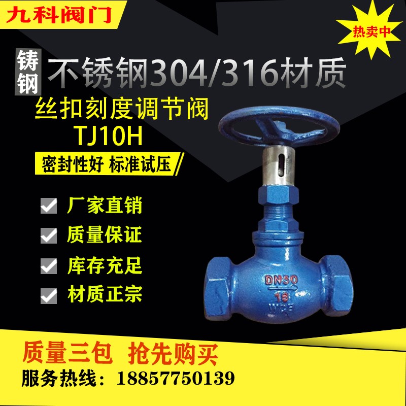 TJ10H-16CP手动调节阀内螺纹带刻度流量丝扣蒸汽铸钢不锈钢调节阀九科阀门-浙江九科阀门有限公司发布日期:2025-7-20