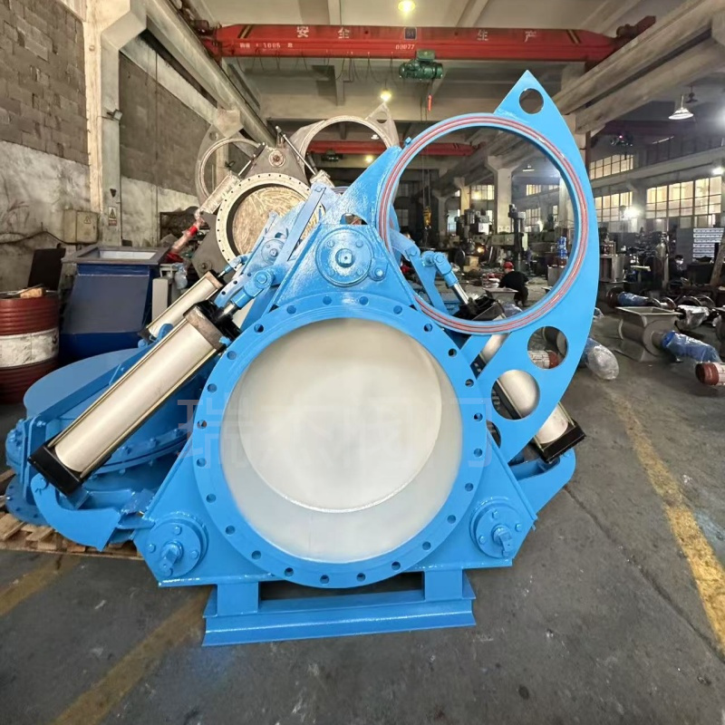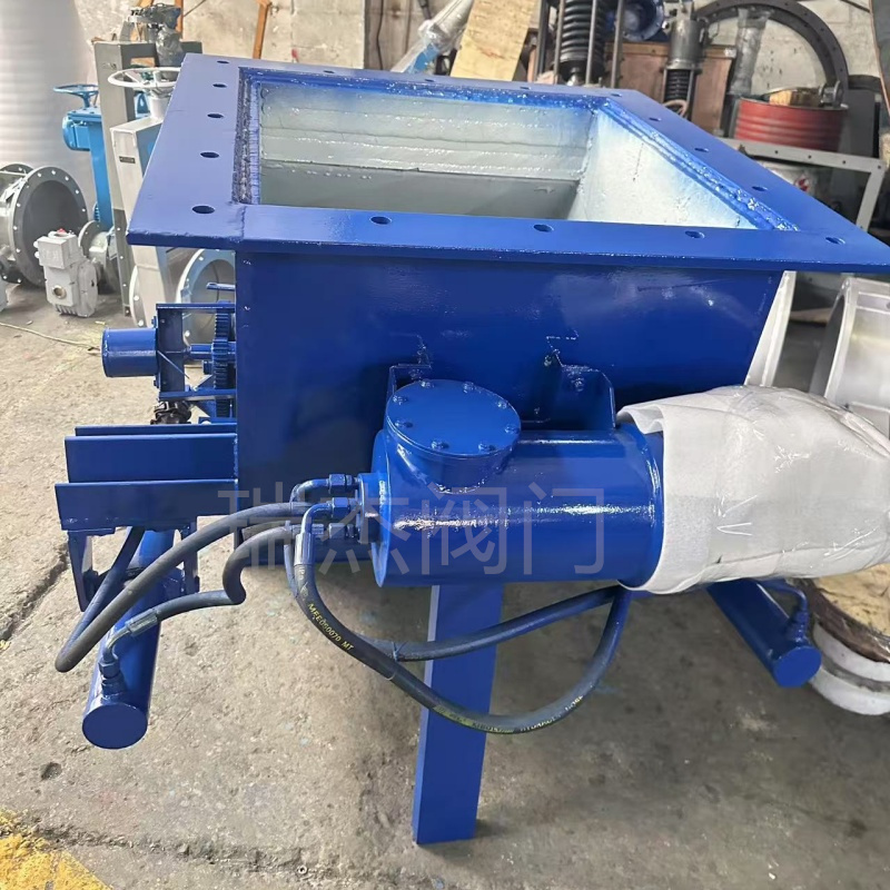 瑞杰供货电液动耐磨扇形闸门软密封橡胶阀心现货电液推杆卸料阀门